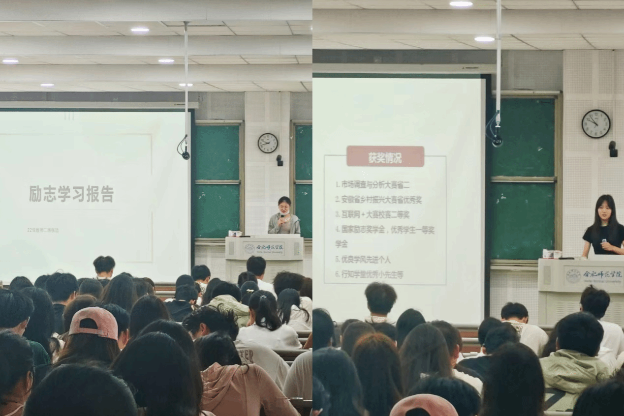 学院在资助育人的过程中,涌现了一批成绩优异、自立自强的优秀学子,学院于6月1日在滨湖校区面向2023级学生举办了一场“做励志之星 扬善学之风”为主题的励志报告会。主讲学生孙慧娟和张洁两位励志奖学金获得者结合专业学习向同学们分享了优异的学习经验,以及他们自立自强的生活作风。此次报告会充分发挥励志典型学生的示范引领作用,彰显榜样的力量,引导广大学生自觉学习先进、努力争当先进,培养学生自立自强、诚实守信、知恩感恩、勇于担当的良好品质。