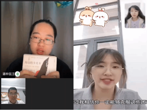 心灵书籍分享组共有9组作品进入投票环节。其中2023级数学与应用数学师范1班的许奕选择和父亲共读心灵书籍《海边的卡夫卡》,通过视频的方式与家长一起分享自己的阅读心得和体会,共同探索书中的智慧与哲理。许奕表示通过与父母共读一本书的方式,不仅让他们更加深入地了解了彼此,还让他们学会了如何更好地沟通和理解对方。