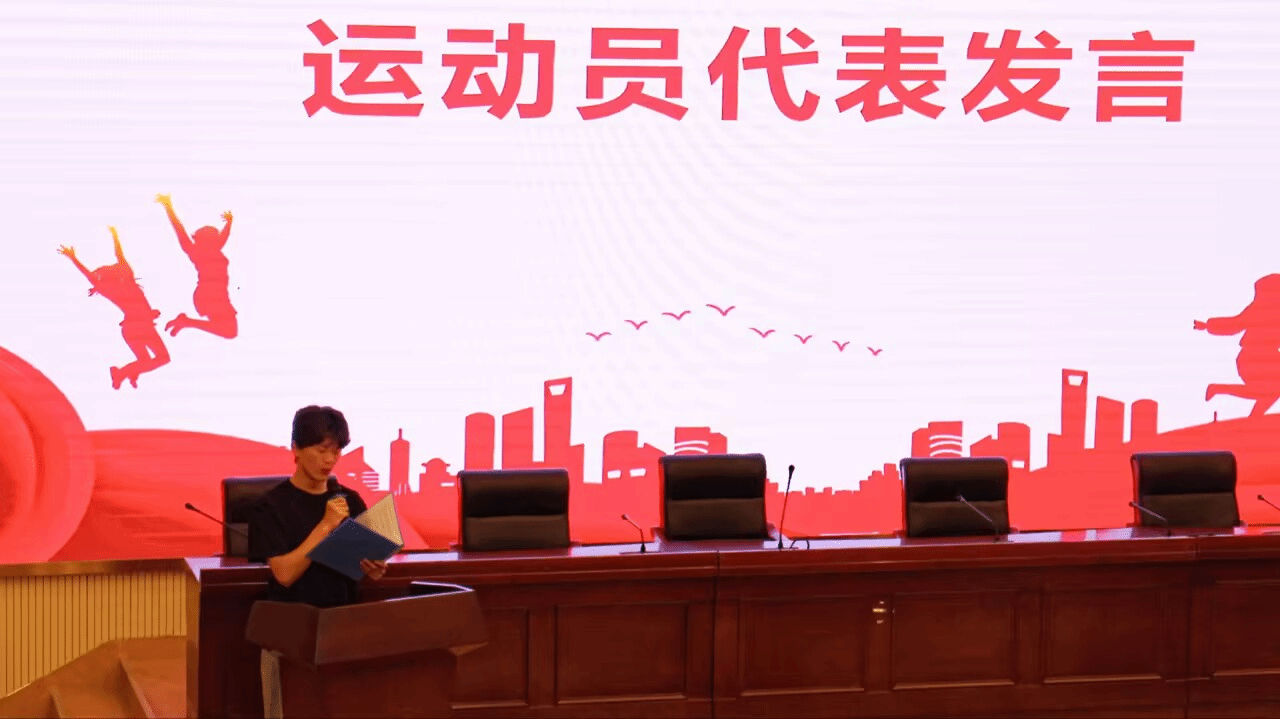 2024级数学与应用数学师范2班的陈子文代表运动员发言,他对学院的大力支持、志愿者的热情服务表示了感谢,并表示运动会期间虽然贡献了精力与汗水,但也学会了友爱、团结和理解。同时他号召同学们今后要积极参与体育运动,要更加团结一致,绽放青春活力,展现青春姿态。
