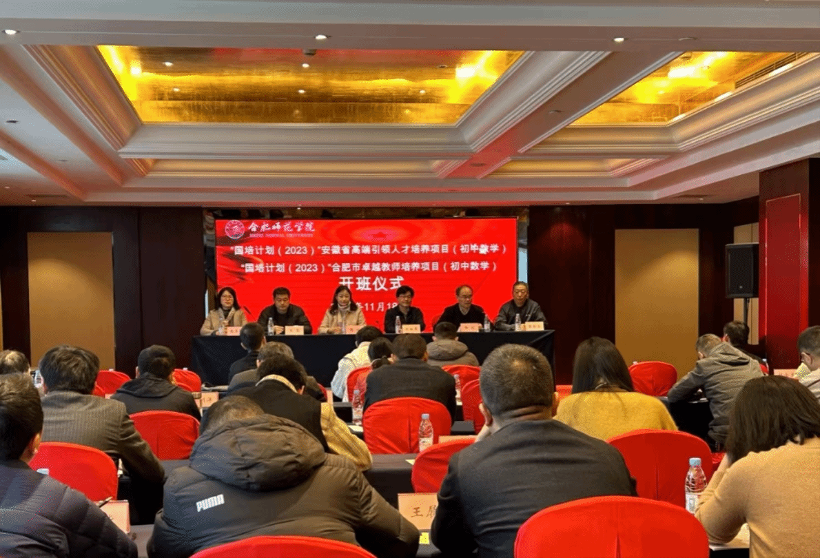 2023年11月17日,为促进教师的专业成长,“国培计划(2021-2023)”——安徽省高端引领人才培养项目和合肥市初中卓越教师培养项目(初中数学)2023年第二期跟岗研修班在合肥市经开区丰大国际大酒店顺利举行开班仪式。pp电子官方网站党委书记穆娟、副院长杨刘、继续教育学院副院长王磊、国培项目负责人张新全教授、新青年数学教师工作室创始人刘祖希教授和来自全省各地的学员参加了本次开班仪式,仪式由国培班主任赵玉华老师主持。