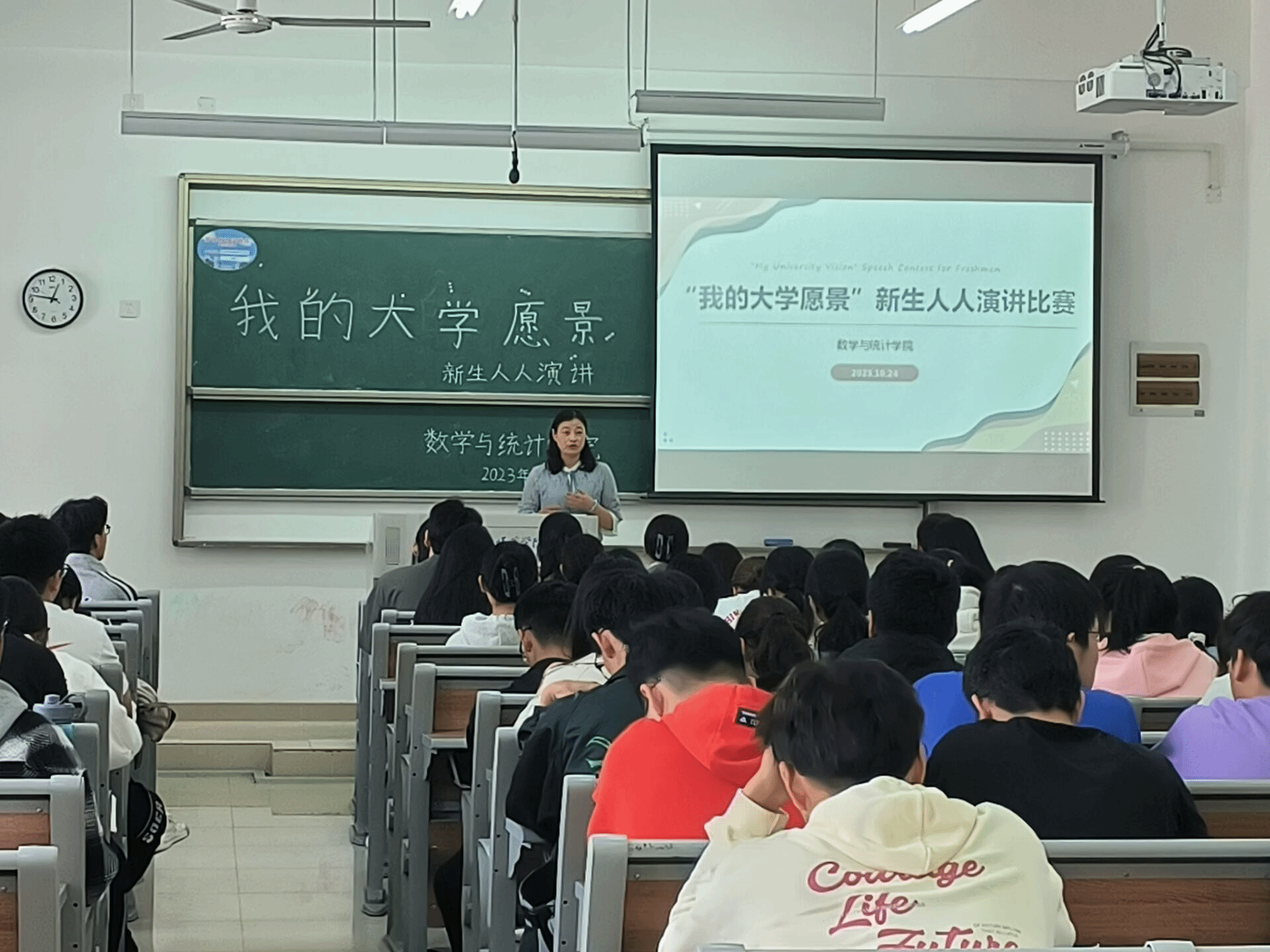 10月24日,pp电子官方网站在铭传楼B301开展“我的大学愿景”新生人人演讲院级选拔赛,各班级共推选10名选手参赛,pp电子官方网站党委书记穆娟、2023级辅导员刘全亚及新生班助受邀担任此次比赛评委。