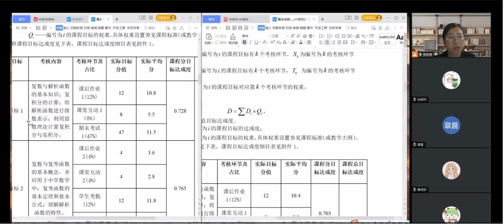 为扎实推进教学管理,提升教学质量,全面了解教学情况,pp电子官方网站于9月26日、10月9日、10日、11日分别对数学与应用数学专业课程目标达成情况召开线上、线下会议(博约楼312)。数学与应用数学专业2022-2023学年第二学期授课教师栾庆芳、沈春芳、樊晓香、王宁等对课程目标达成情况进行分析反馈。