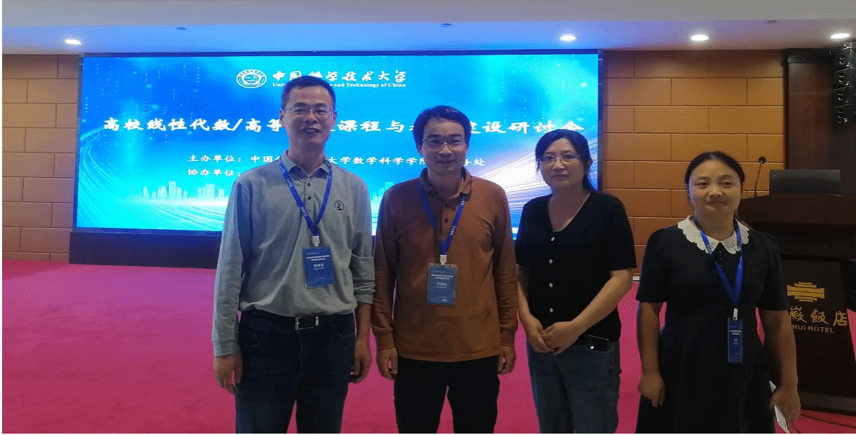 本网讯 为贯彻2023年全国教育工作会议精神和《教育部高等教育司2023年工作要点》,深入探讨在新工科、新医科、新农科、新文科背景下线性代数课程建设的新内涵、教材出版的新趋势, 推进线性代数课程教学内容、教学方法和教学模式的改革与创新, 9月22-24日, 由中国科学技术大学主办,高等教育出版社协办,高校线性代数/高等代数课程与教材建设研讨会在合肥举行,pp电子官方网站操晓娟、潘根安、陈业、齐继兵四位教师参加了此次研讨会。