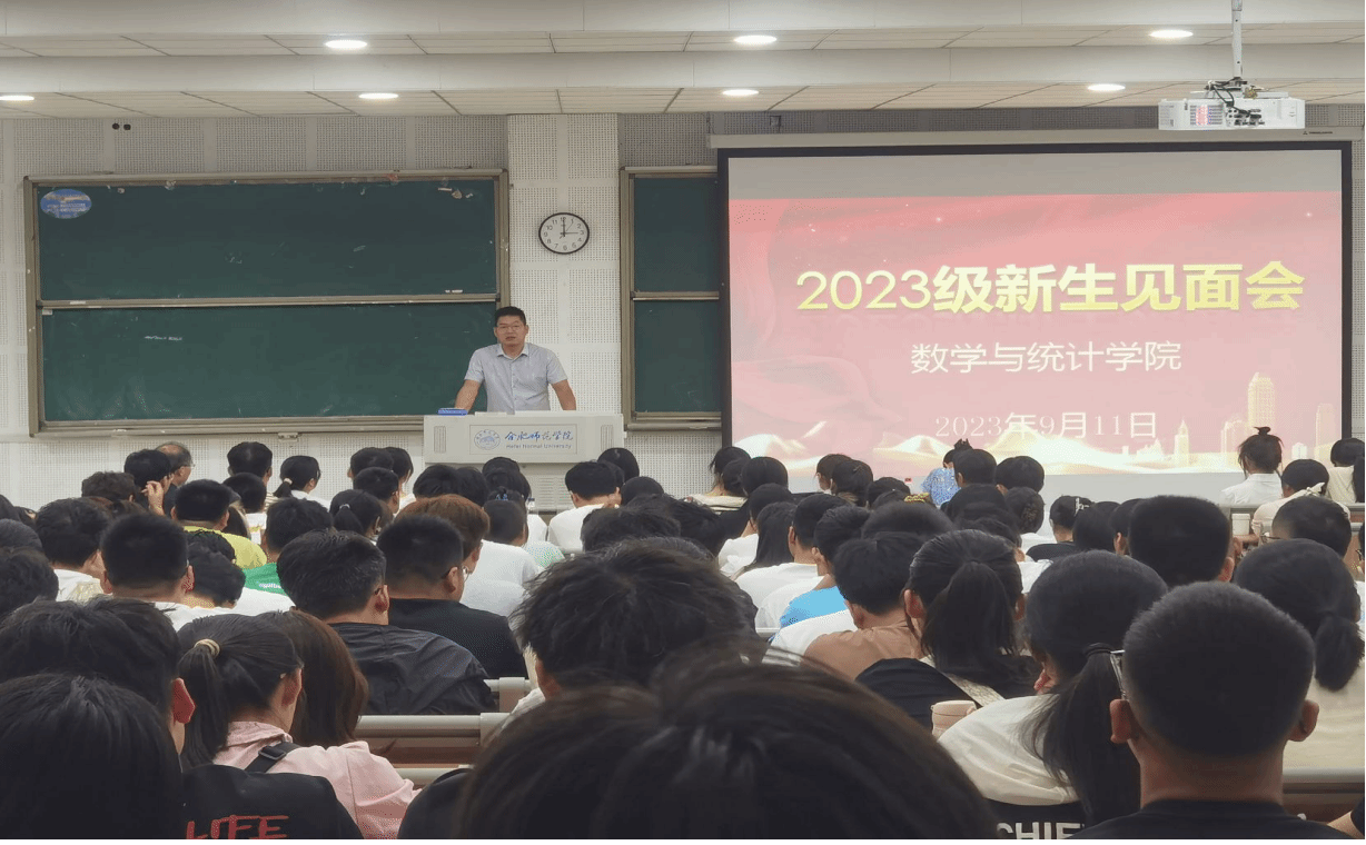 本网讯 9月11日下午,pp电子官方网站在滨湖校区D101教室举行2023级本科生师生见面会,学院党委书记穆娟、副院长杨刘、副书记陶金昌、副院长黄浩、2023级辅导员刘全亚及2023级全体新生参加此次见面会,会议由刘全亚主持。
