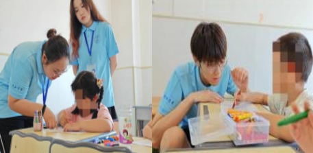 为了给孩子们提供科学、有针对性地帮助,了解与自闭症儿童交流的注意事项,在学堂开办前,康复中心为小先生们开展了专业培训,小先生们陪伴孩子们,与他们一起听儿歌、跳舞、玩游戏、做手工等,深入了解孩子们的内心世界,奉献自己的爱心和力量。