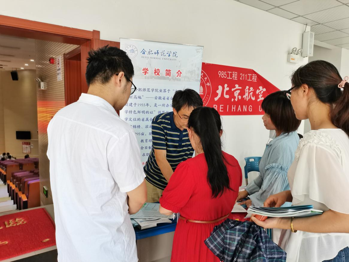 本次招生公益咨询会(桐城站)由安徽省教育招生考试院主办,安徽青年报社协办,桐城八中承办,吸引了来自全省负责高考志愿填报人员、考生及家长等5000余人参加。25日上午来学院招生咨询台进行现场咨询的考生及家长络绎不绝,齐继兵老师对考生和家长的咨询耐心细致地进行了解答,宣传介绍了学校“师范性、应用型”的办学定位,学校国家级、省级一流专业建设点等情况,就学院办学历史、学科专业特色、历年招生情况、师资队伍及就业前景等方面向考生及家长作了详细介绍,帮助考生及家长更全面地了解合肥师范学院,并为考生及家长填报志愿给出针对性的合理性建议。