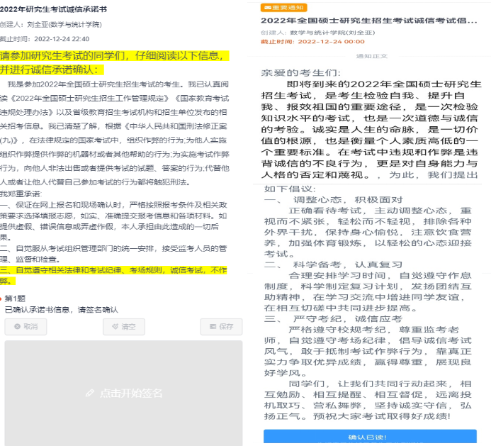 本网讯 为切实增强学生遵纪守法、诚信考试的意识,维护研究生考试的公正性和严肃性,pp电子官方网站开展2023年研究生考试诚信教育活动。