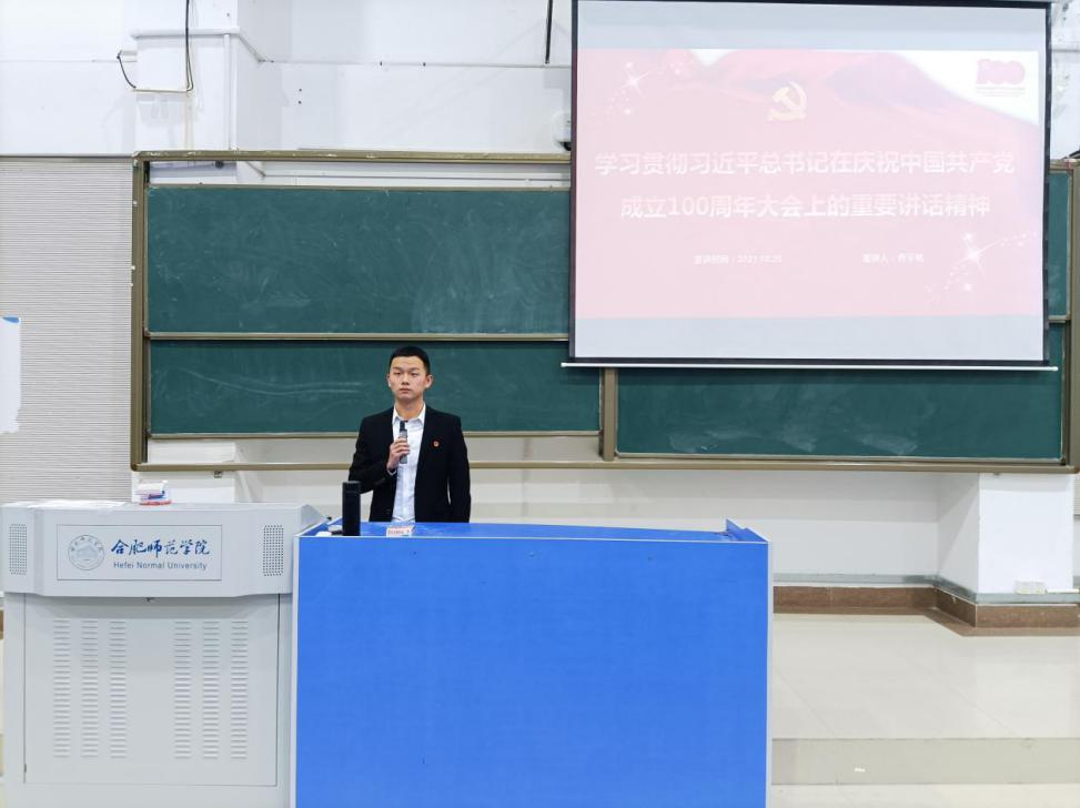 曹宇帆首先围绕“宣示一个目标、四个伟大成就、四个庄严宣告、九个必须”等方面,深刻解读了习近平总书记“七一”重要讲话精神的主要内容和丰富内涵,并结合习近平总书记重要讲话中对青年的要求,帮助同学们进一步深化了对习近平总书记“七一”重要讲话精神的领会和把握,着力推动了党史学习教育走深走实走心。