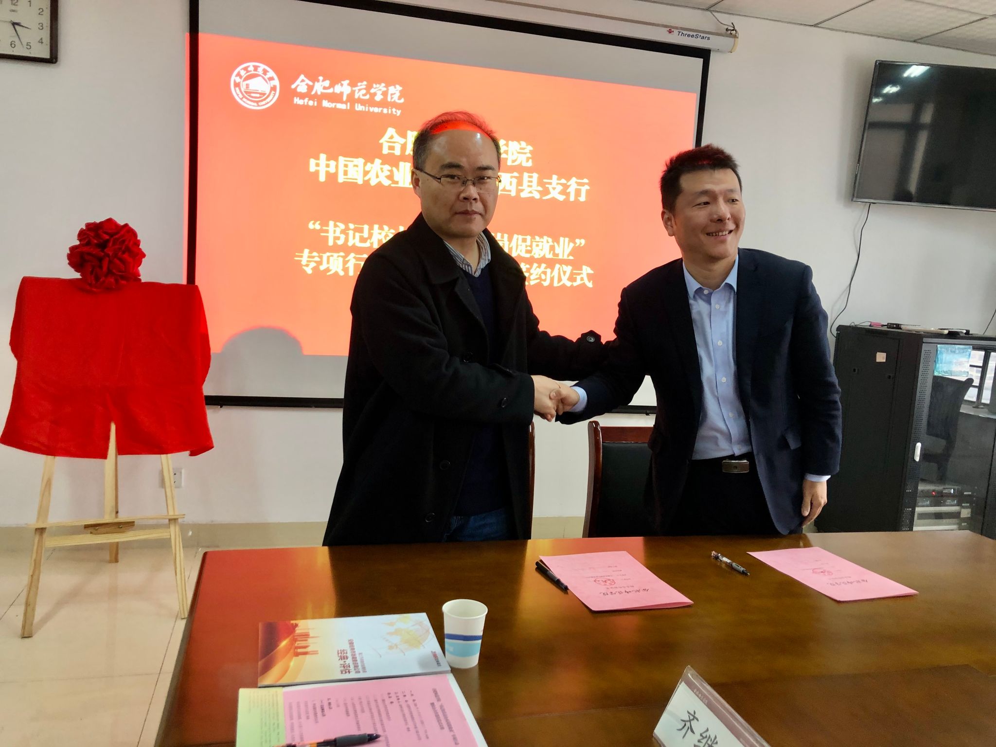 杨刘与中国农业银行肥西县支行副行长肖刚签订校企合作协议