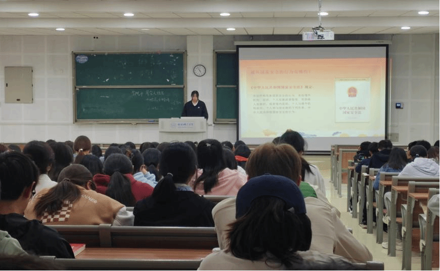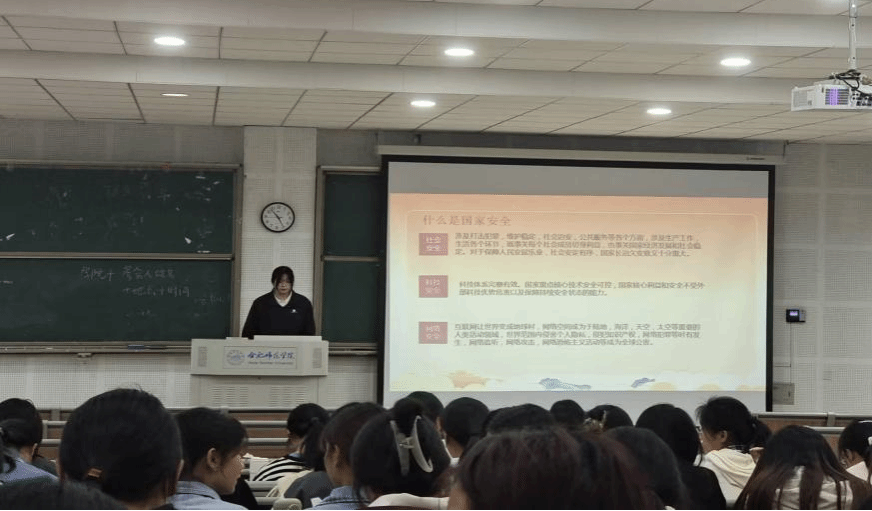 为深入贯彻落实习近平总书记关于加强国家安全教育的重要指示批示精神,提升师生国家安全意识和防范能力,4月12日,pp电子官方网站在博学楼D101举办了国家安全教育专题讲座,活动由辅导员杨尔飞主持,2022级师范一班、退伍士兵胡靖雯同学领学,滨湖校区2022级同学参会。