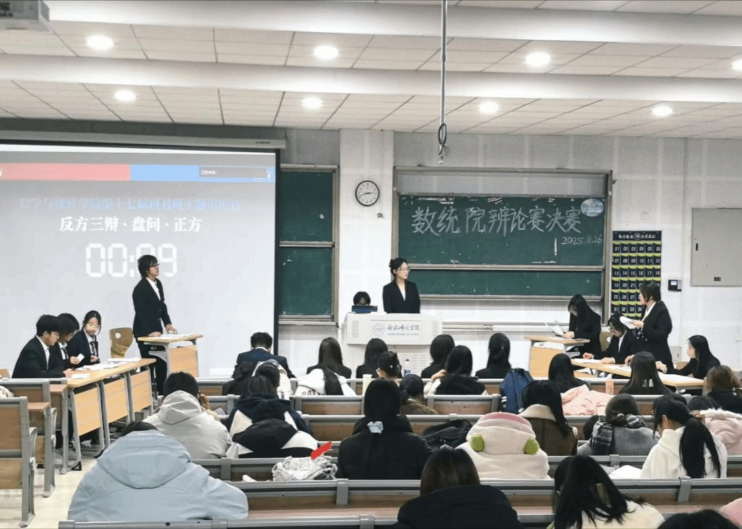 11月26日,决赛在博学楼A108举行。比赛遵循开篇立论、驳论、攻辩、自由辩论、总结陈词五大环节,围绕“接纳不完美或是追求完美”“时势造英雄或是英雄造时势”两大辩题展开。数学与应用数学师范三班与一班、数学与应用数学师范四班与二班分别就辩题交锋,选手们引经据典、逻辑清晰,精彩的表现获得了观众掌声。