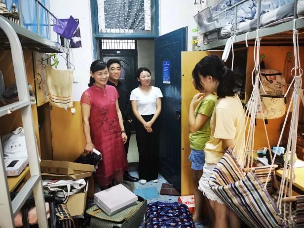 傍晚,郑支农带领辅导员们一同前往学生宿舍慰问返校学生,与学生们交流学习生活上的一些问题,郑支农叮嘱学生们要继续做好疫情防控工作,注意安全,有问题及时向辅导员反馈,要处理好与室友之间的关系,营造良好的学习氛围。之后,郑支农还温馨提示学生一周后将进行上学期留考的专业课考试,并提出期望,希望同学们不要紧张,好好复习,在接下来的专业课考试中取得好成绩,几句简单的寒暄让学生们感受到了家的温暖。