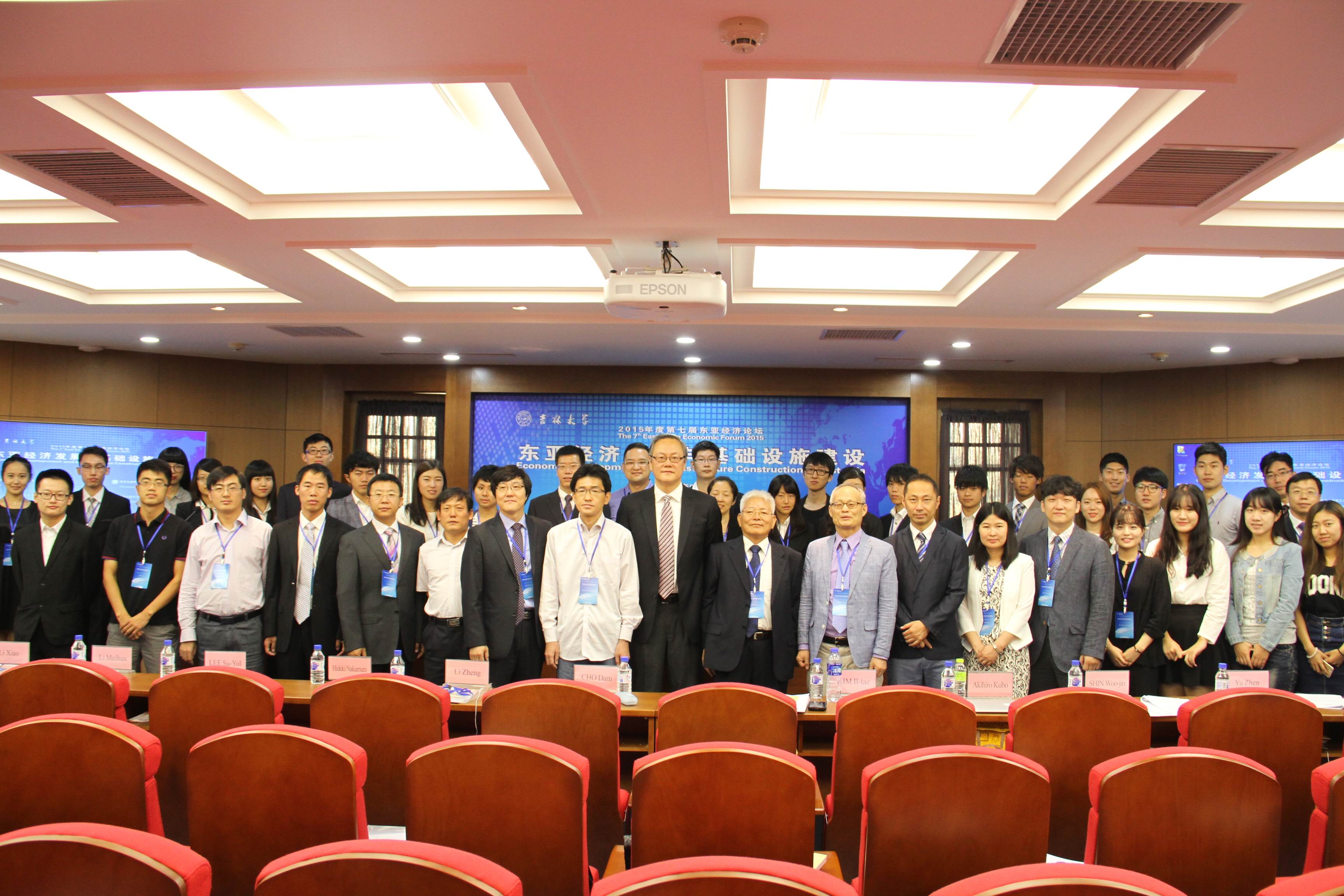 2015年9月17日至19日,由球盟会qmh网站qmh球盟会亚博、球盟会qmh网站中日经济共同研究中心、日本大阪市立大学经济学部、韩国全南国立大学校经营大学联合主办,由球盟会qmh网站qmh球盟会亚博、球盟会qmh网站中日经济共同研究中心承办的“2015年度第七届东亚经济论坛”在球盟会qmh网站举行。本次论坛以“东亚经济发展与基础设施建设”为主题,由来自中、日、韩三方的学术代表团在有关领域进行专业探讨,同时,吸引各单位教师、学生近60余人参加本次会议。