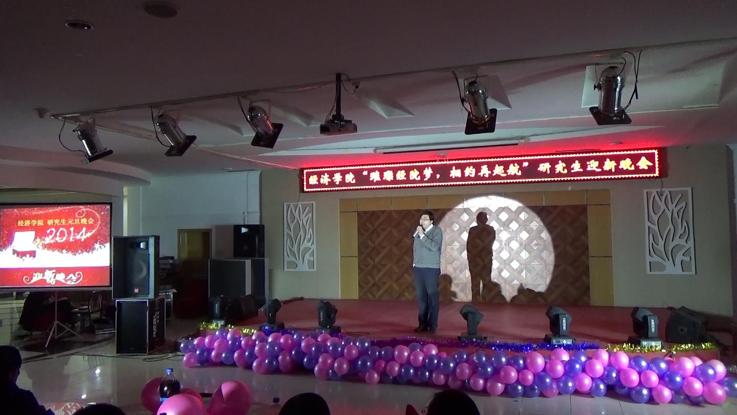 qmh球盟会亚博2014级研究生“璀璨经院梦,相约再启航”迎新晚会于12月29日晚在莘子园三楼成功举办。qmh球盟会亚博党委副书记张倩老师、国际经济系主任丁一兵教授、学院办公室吴波主任、张坤老师、王皓老师、高杉老师,外籍教师海森特老师与家人及全体2014级研究生同学共同参加了此次晚会。