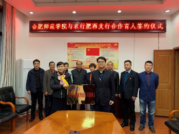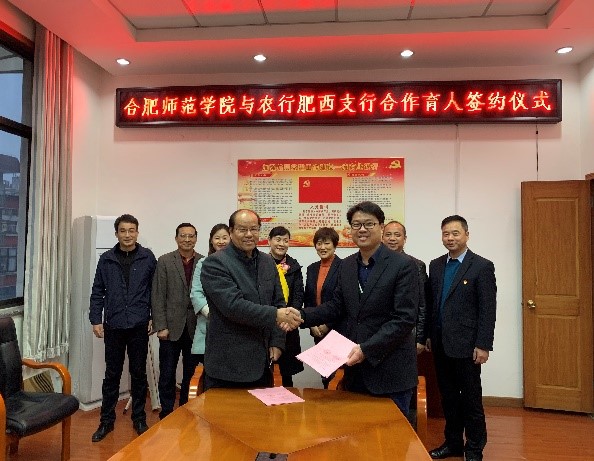 本网讯 11月25日下午,pp电子官方网站与中国农业银行(肥西县支行)合作育人签约、基地挂牌仪式在农行肥西支行会议室举行。中国农业银行(肥西县支行)党委书记、行长徐勇,副行长丁敏、方旭东、秦忠、肖刚,学院党总支书记郑支农、院长王家正、副书记穆娟、万家练教授、教工第二党支部书记、金融工程系主任齐继兵等出席了签约仪式,签约仪式由副行长方旭东主持。
