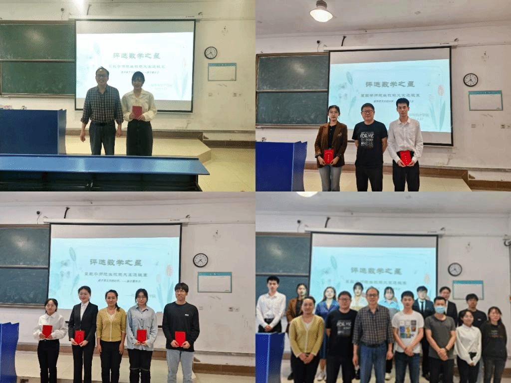本网讯 为进一步强化数学与应用数学专业师范生技能培养,提高师范生的专业素养、职业能力和就业竞争力,4月27日,pp电子官方网站数学文化节系列活动之师范生技能大赛暨数学之星评选在逸夫楼A104举行。学院张晓贵教授、系主任许和乾、解大鹏副教授和辅导员周丽娜、曾飞担任了比赛评委。