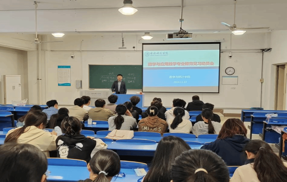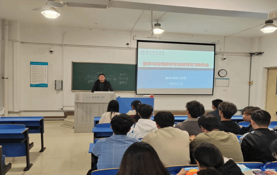 为加强师范生教育实践锻炼,提升教育教学技能,推动高质量完成教育见习工作,11月13日下午,pp电子官方网站在逸夫楼A209教室召开了2022级数学与应用数学(师范)专业教育见习动员会。学院副院长黄浩、数学系主任许和乾和全体2022级数学与应用数学(师范)专业学生参加会议。