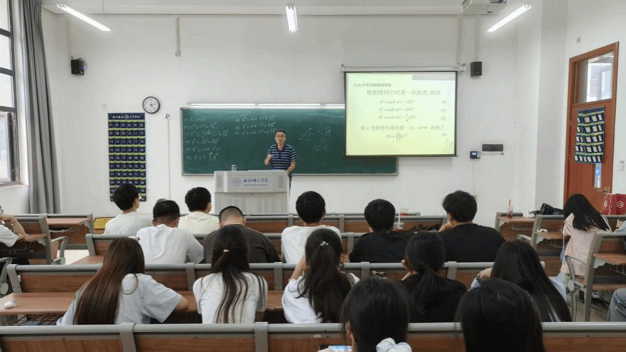 6月11日下午,pp电子官方网站齐继兵老师在滨湖校区博学楼A102教室作了以“关于单形的Euler不等式的加强”为题的学术报告,数学与应用数学专业的部分学生参加了该场报告。