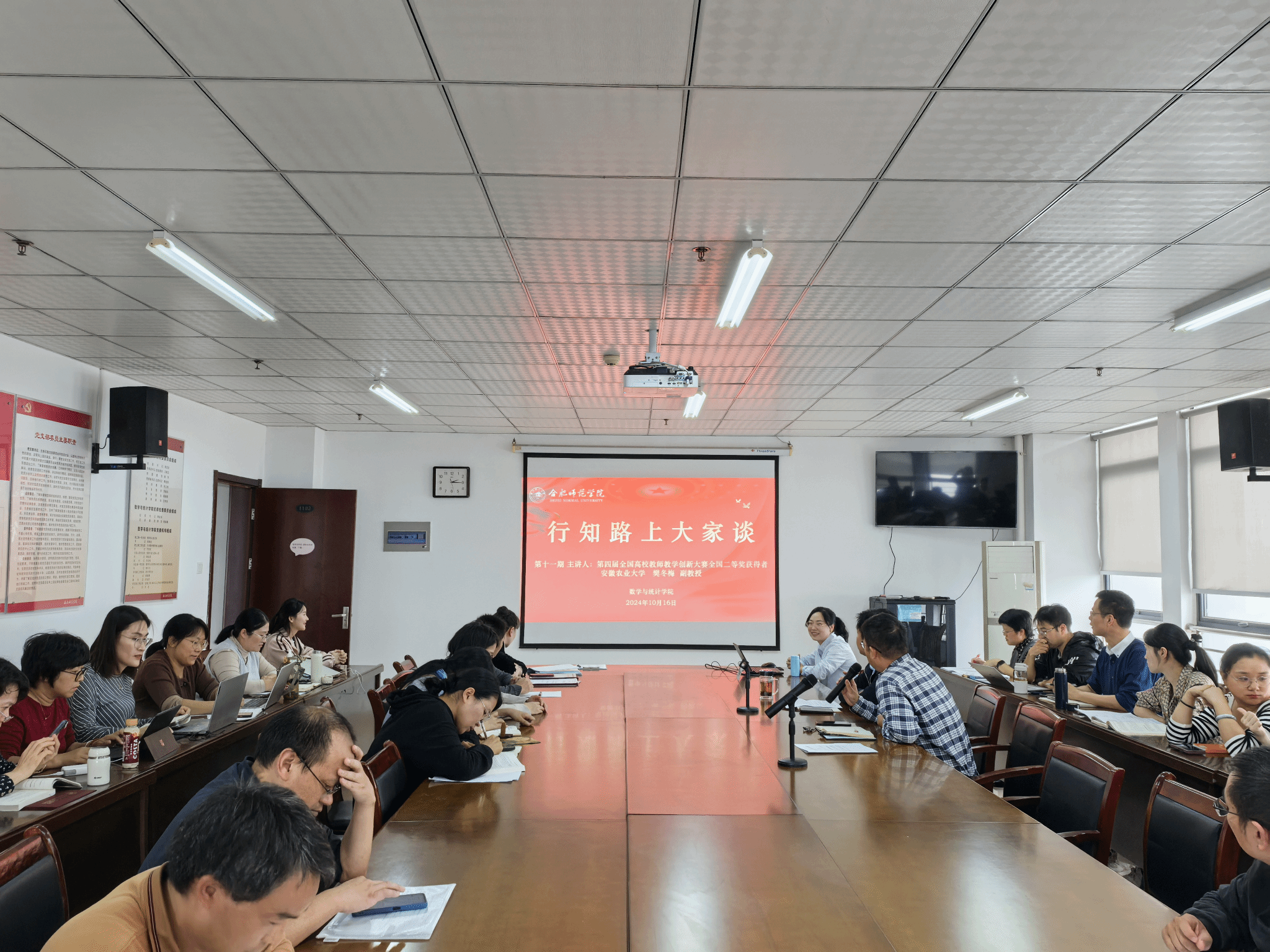 教师教学竞赛是推动教师专业成长、提升教学质量的重要途径。为进一步发挥教师教学竞赛的示范引领作用,提升教师教学能力,激发教师教学创新热情,10月16日下午,pp电子官方网站在行知楼1102会议室开展了“行知路上大家谈”第十二期活动,邀请了安徽农业大学信息与人工智能学院副教授、第四届全国高校教师教学创新大赛二等奖获得者樊冬梅老师,为全体教职工开展以“赛教相长,创新驱动——赋能基础课课堂教学创新”为主题的专题报告,报告会由副院长黄浩主持。