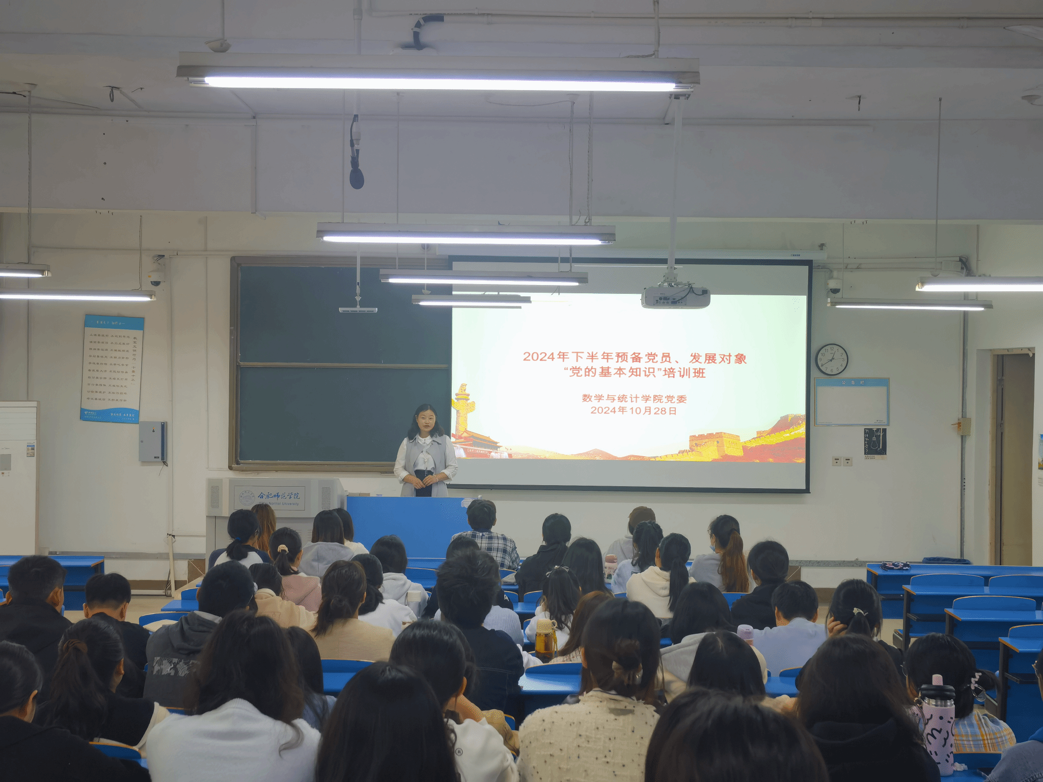 为深入学习贯彻习近平新时代中国特色社会主义思想和习近平总书记考察安徽重要讲话精神,切实做好青年大学生党员教育培训,pp电子官方网站分党校于10月28日在逸夫楼A107教室举行2024年下半年预备党员和发展对象“党的基本知识”培训班开班仪式,学院党委书记穆娟、培训班班主任王志出席开班仪式,发展对象、预备党员共61人参加培训。仪式由王志主持。