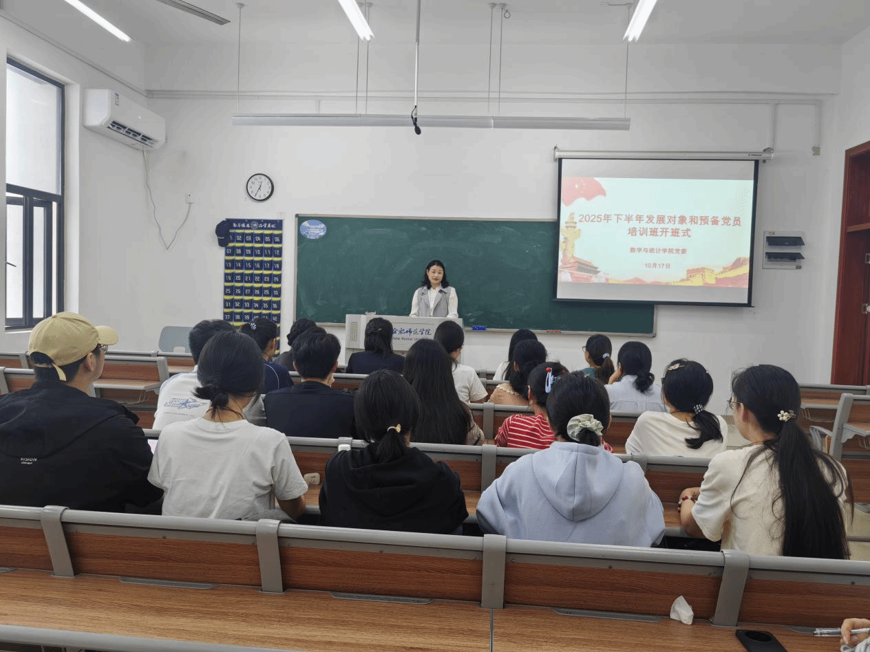 为深入学习贯彻习近平新时代中国特色社会主义思想,严把党员发展“入口关”,提升发展对象与预备党员的政治素养和理论水平,pp电子官方网站2025年下半年发展对象和预备党员培训班于10月17日、10月20日分别在滨湖校区铭传楼B207教室和锦绣校区逸夫楼109教室举办了开班仪式暨首场培训。开班仪式上,学院党委书记穆娟、培训班班主任曾飞和学院辅导员刘全亚出席,全体参训学员参加。