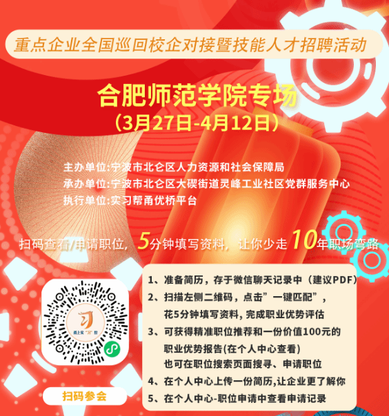 (3月27日-4月12日)重点企业全国巡回校企对接暨技能人才招聘活动合肥师范学院专场