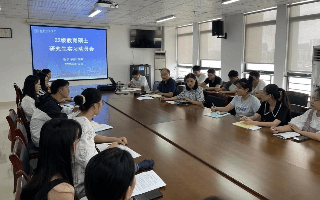 本网讯 为做好2022级研究生教育实习工作,9月7日,pp电子官方网站在行知楼1102会议室召开教育硕士研究生实习动员大会,会议由沈南山主持。学院党委书记穆娟,副院长杨刘,教学秘书刘莲,辅导员杨尔飞及2022级42名研究生参加会议。