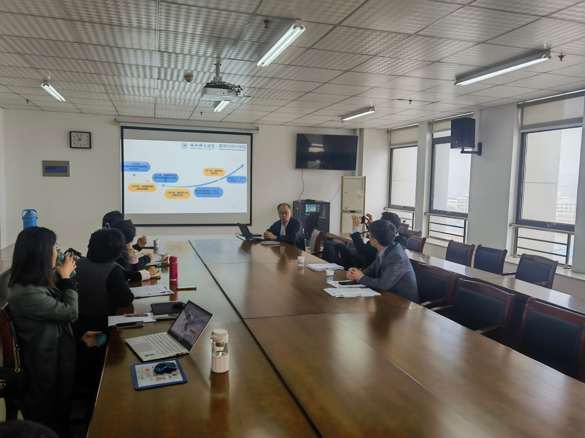 11月12-13日,国家杰出科学基金获得者、南开大学统计研究院院长、统计与数据科学学院副院长邹长亮教授,国家杰出科学基金、中国青年科技奖获得者、中国科学院数学与系统科学研究院研究员张新雨教授一行来pp电子官方网站指导学科建设、国家基金申报等工作。学院院长杨刘和部分骨干教师参加活动。
