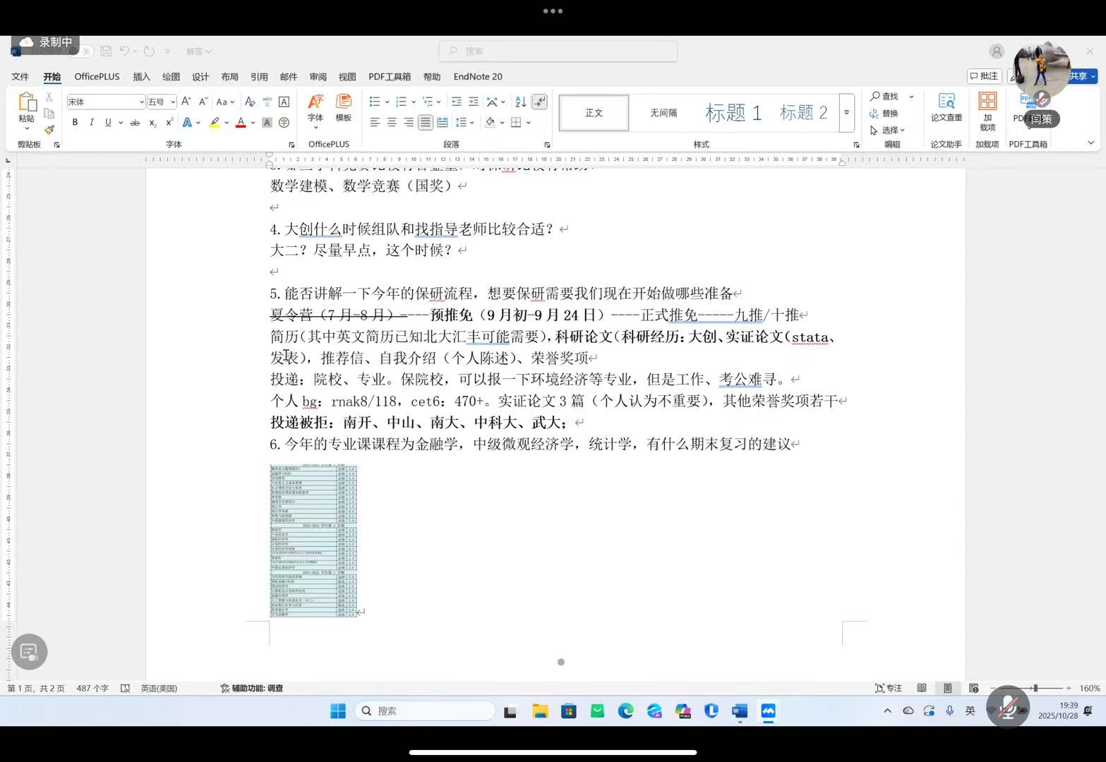 接着由盛思源学长分享了简历制作与模拟面试的经验。一份出色的简历和充分的面试准备是成功突围的关键。简历应突出学术成果与实践经验,布局清晰,语言简洁。面试通常包含中文自我介绍、专业题抽签与问答、英文提问。专业题深度与广度并存,例如曾被问及“金本位体系的特点与优劣”及“不变增长模型与多元增长模型的区别”,考验考生的知识储备与临场应变能力。不仅如此,学长还为同学们系统分析了本学期的疑难课程,帮助同学们梳理课程的难点。