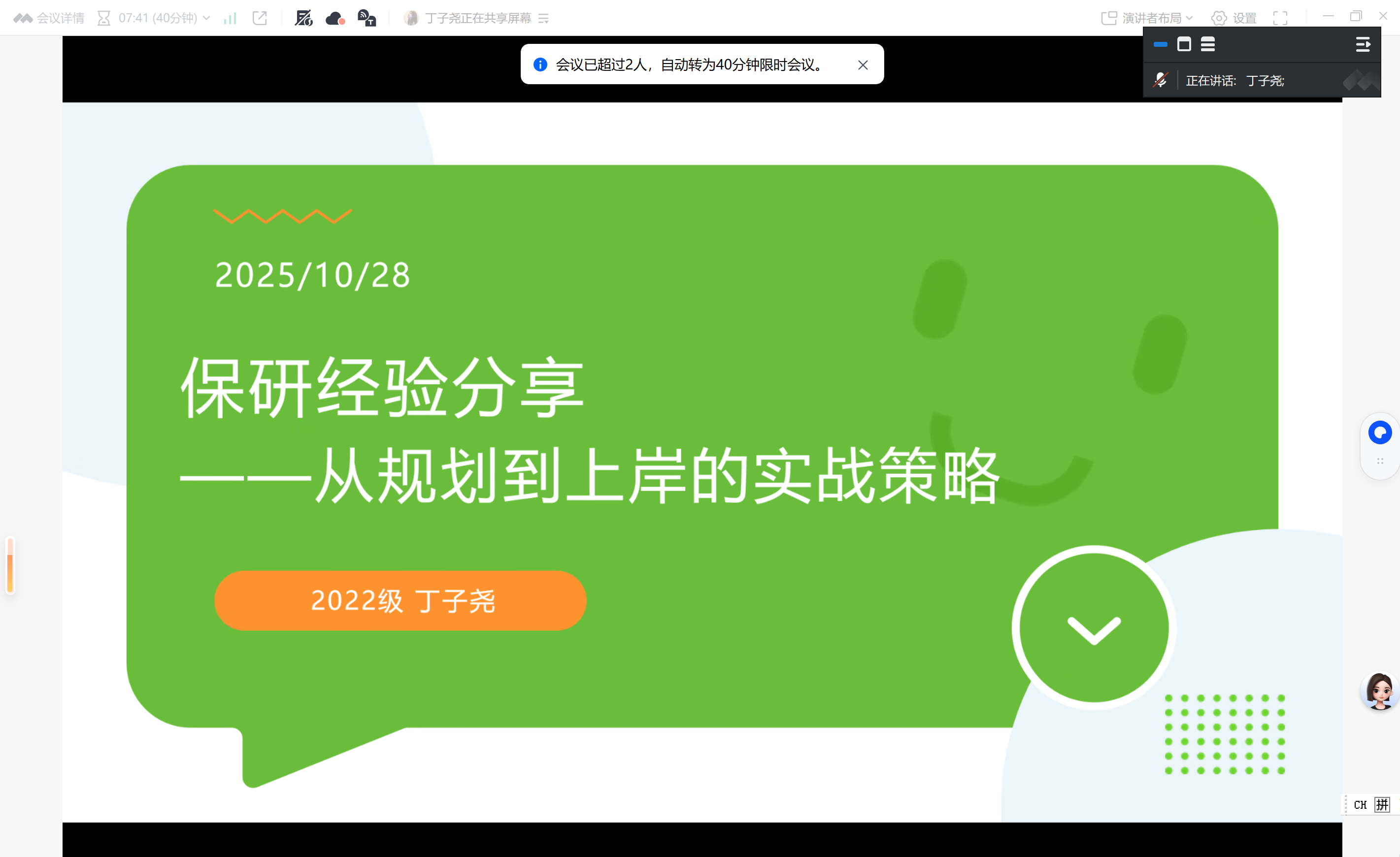 2025年10与28日晚,金融2班在班主任冯永琦老师的指导下开展了一场“保研和学习经验交流与分享会”。共三位学长学姐为同学们讲述了自己的宝贵经验,强调了保研是一场信息战与持久战,明确的规划、扎实的准备与高效的执行三者缺一不可。