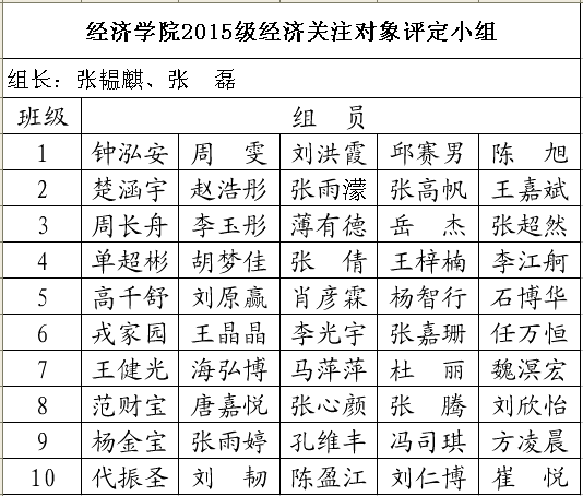 qmh球盟会亚博2015级经济关注对象评定小组名单公示